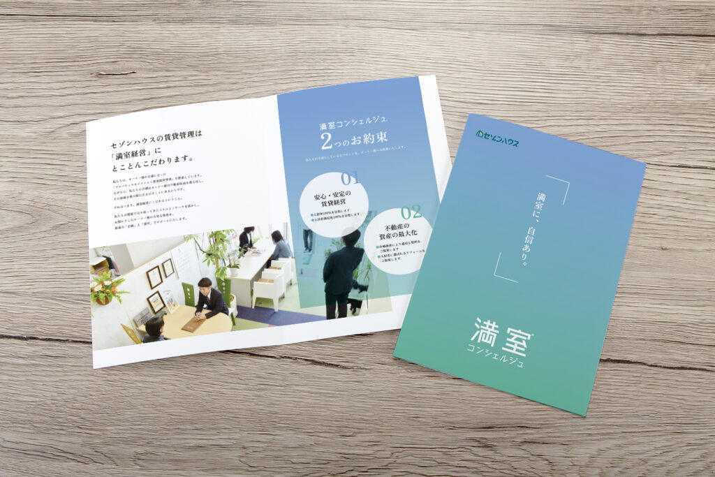 強み出しから行い、新サービス・ブランドの構築をサポートしました。 合わせてパンフレットも制作し、それを使ったオーナープレゼン研修も行いました。
