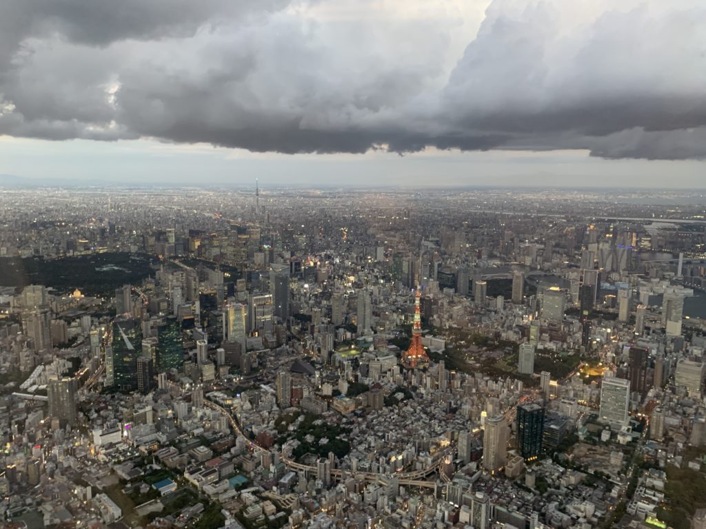 羽田空港への離着陸が、都心ルートができたのですが、都心側からの着陸は初めて。東京タワー、スカイツリー、副都心がマルっと見られます。