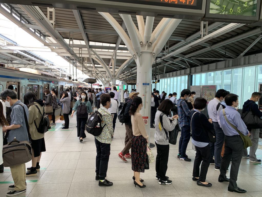 東京通勤ラッシュは、通常よりも少ないけど、やはり人の数は多いです。