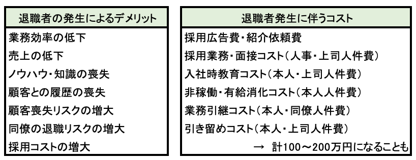 何の準備もなく人が辞めることの損失は想像以上に大きいものです。