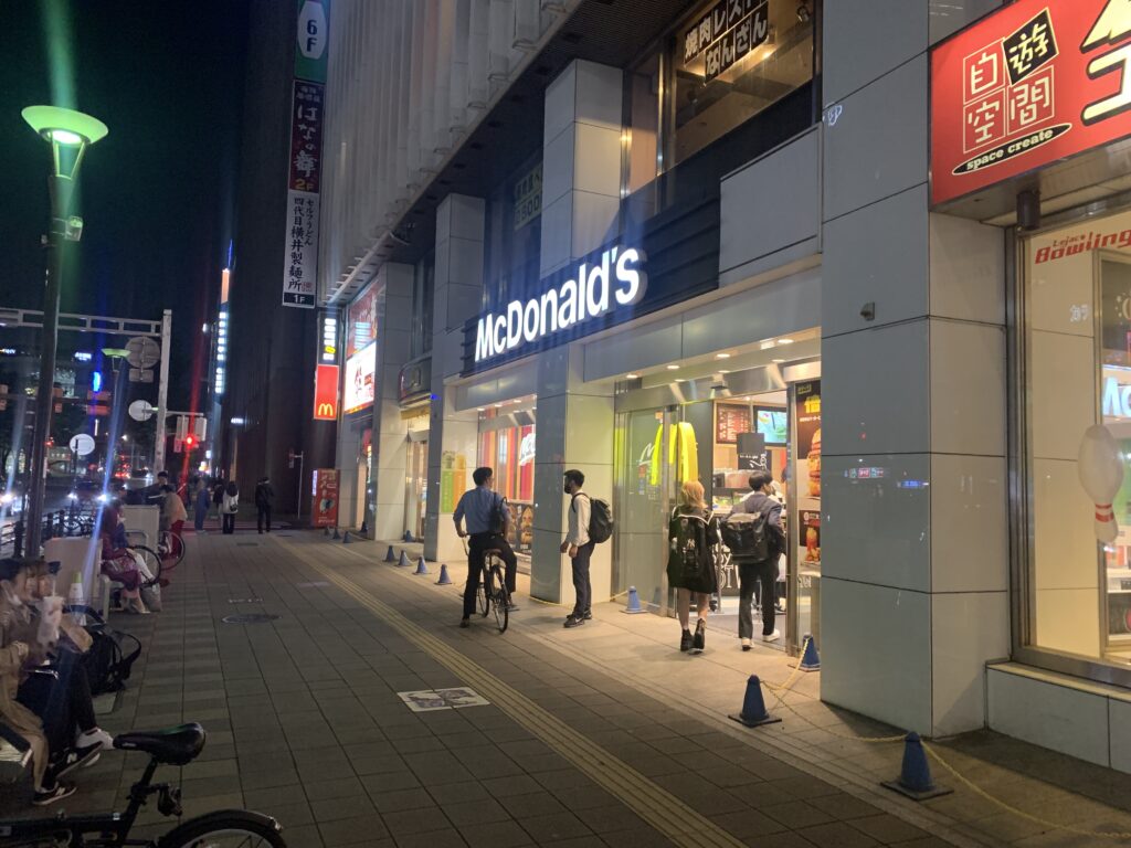 お店がやっていないので、マックでテイクアウトして外で食べる人たちがたくさん。周辺がフレンチフライの香りが漂います。