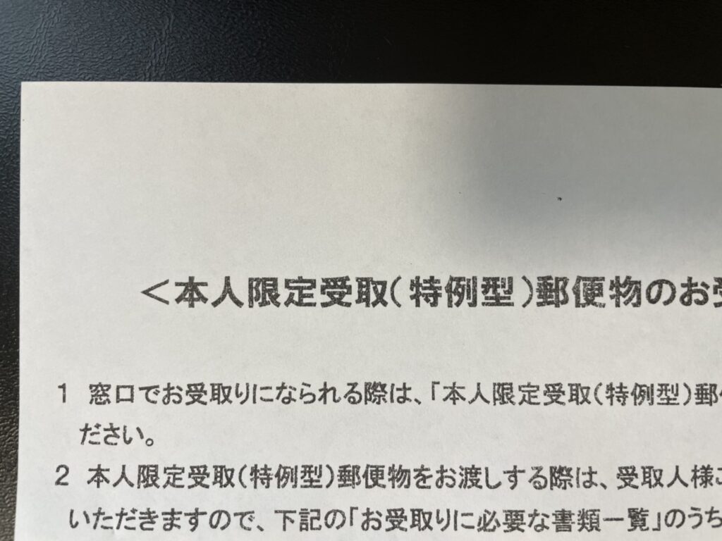 移行講習の受講に必要なテキストが届くのですが、すぐに届くわけではなく、本人限定受取郵便として届きます。まずは「本人限定受取郵便が到着し、郵便局で保管しているので、保管期限までに受け取ってください」というお知らせが届き、案内に沿って手続き(私は配達を指定)をします。